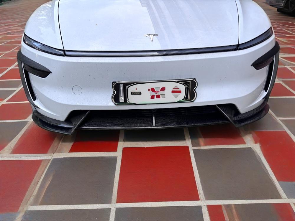 Upgrade Your 2025-2026 Tesla Model Y Juniper Premium exterior with the Wet Carbon Fiber Front Bumper Lip Spoiler.